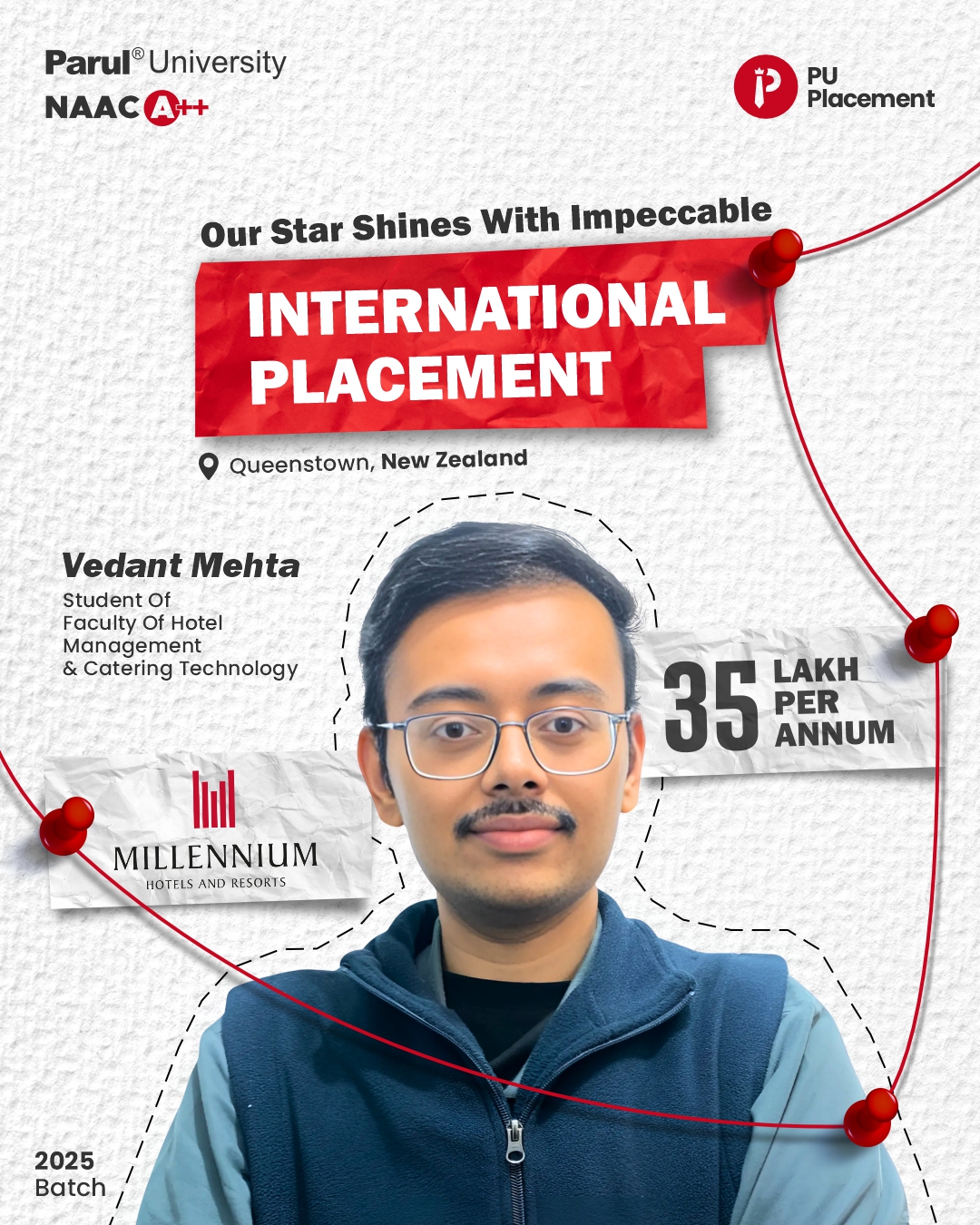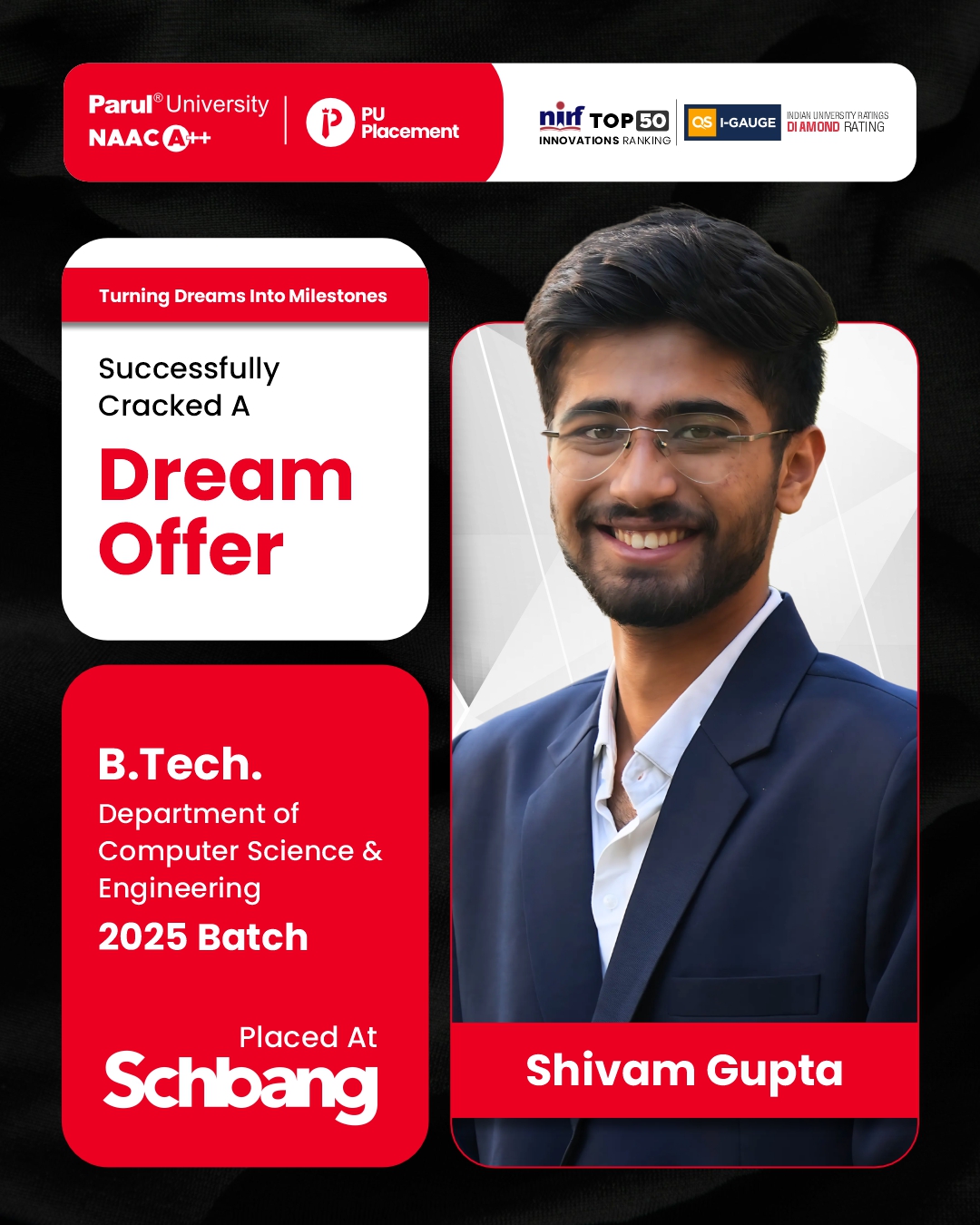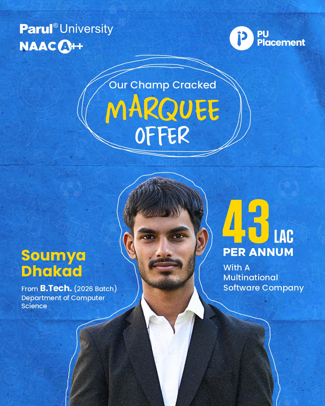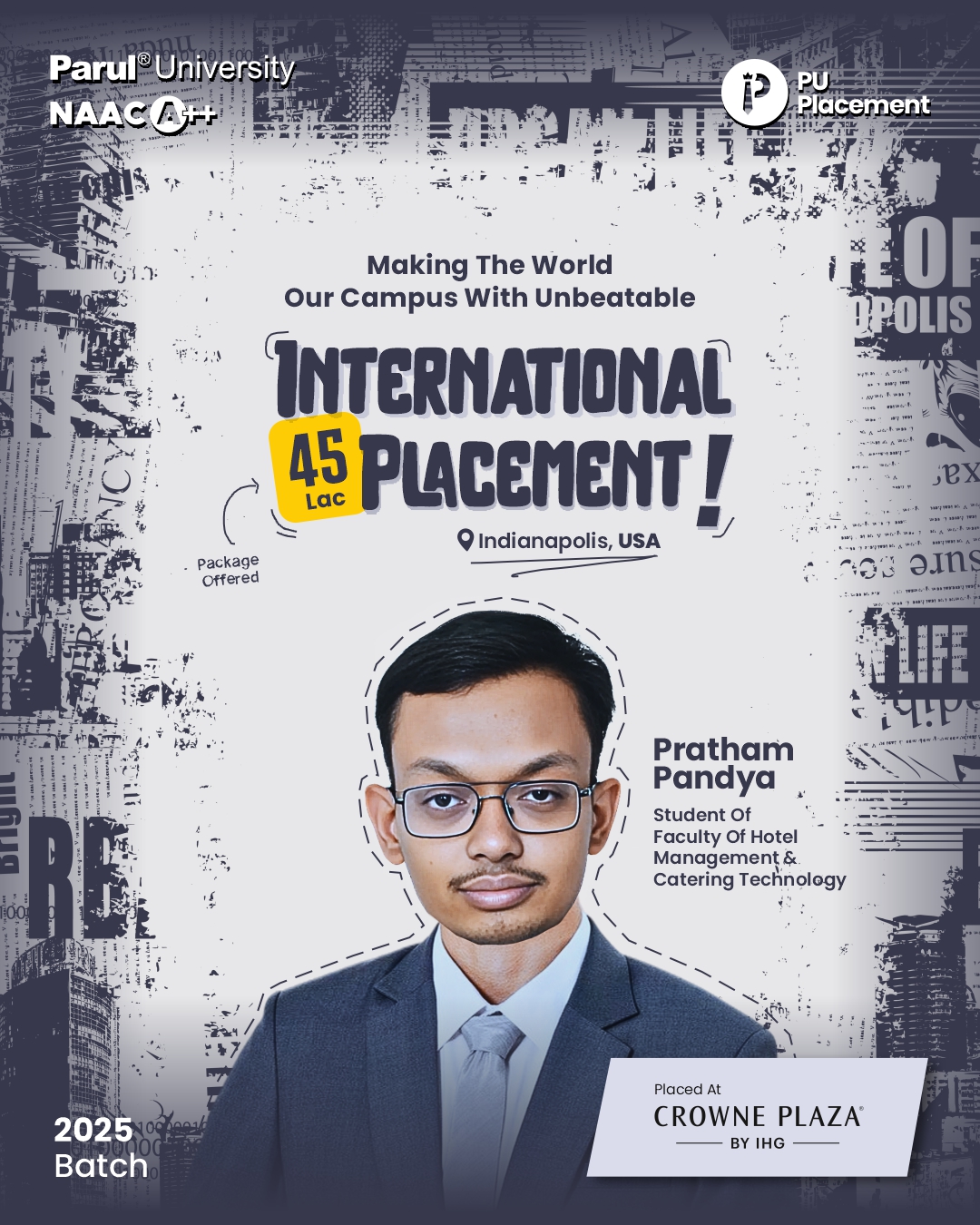 Placements at Parul University are not milestones but continuations of a journey, from learning to leadership. Through the Training and Placement Cell, we align academic vision with industry realities, ensuring every student steps forward not just with a job offer, but with purpose and direction.