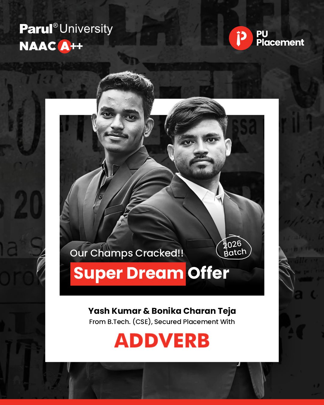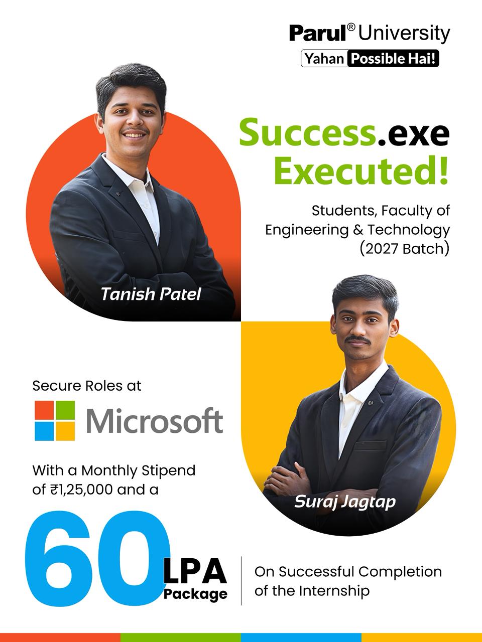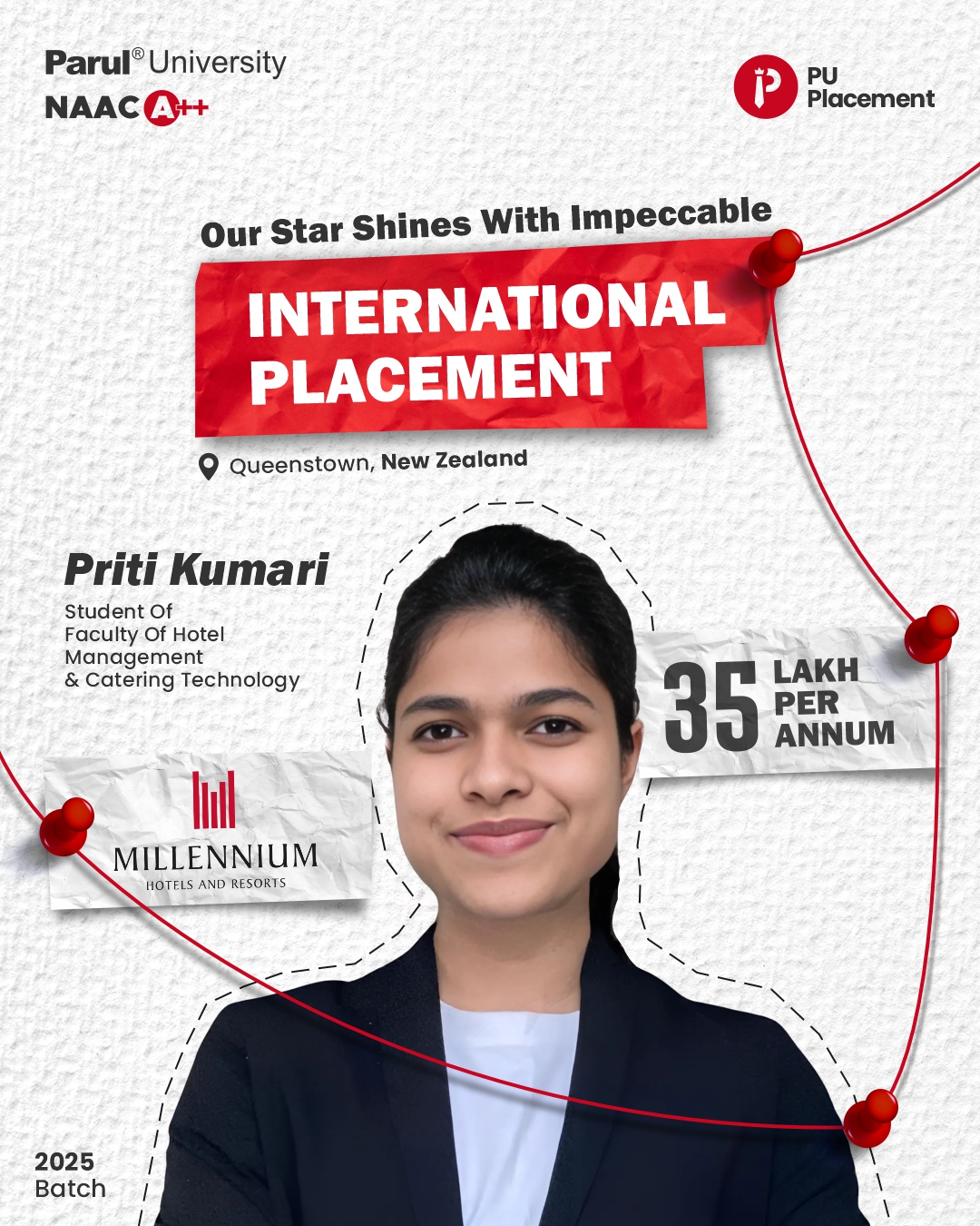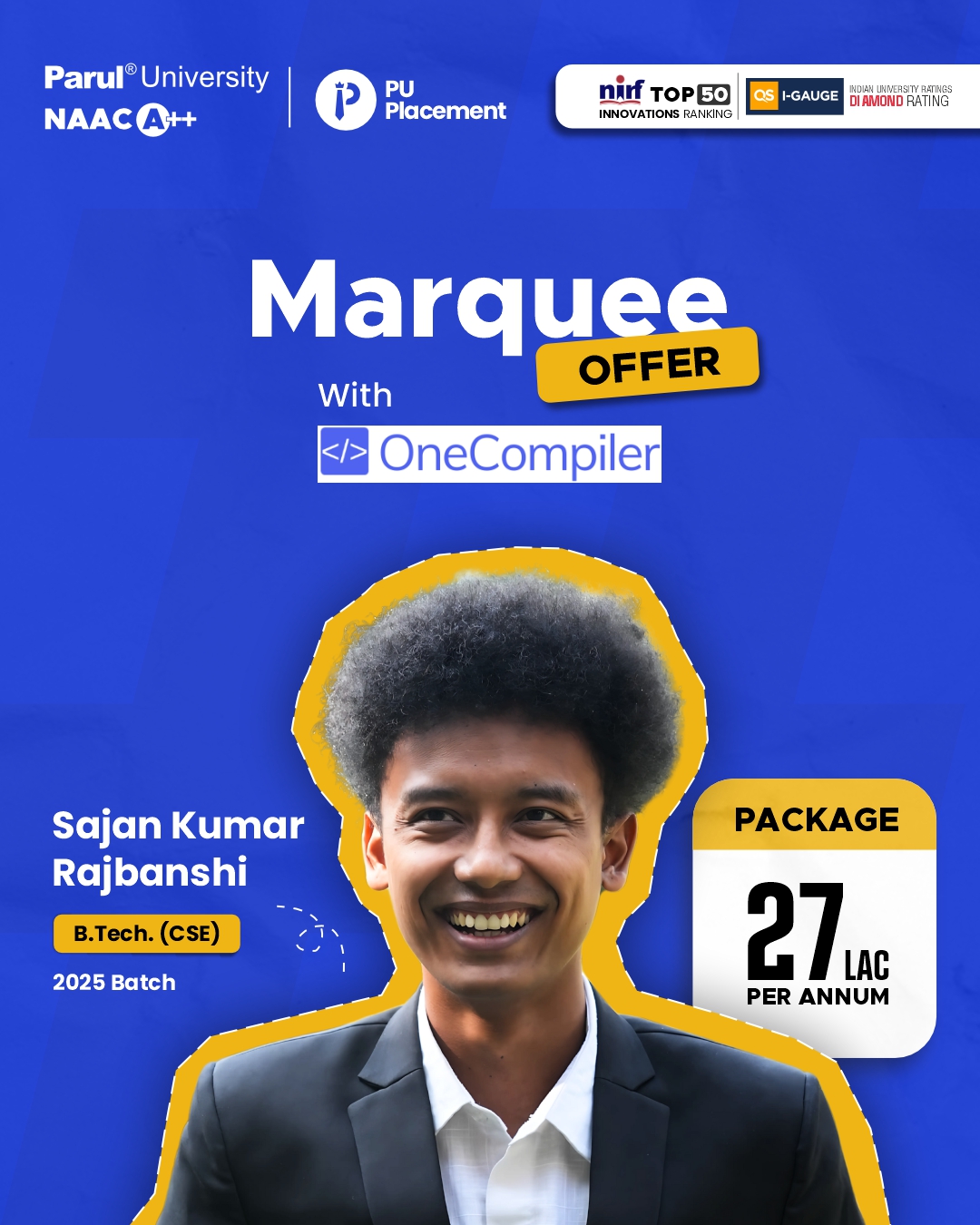 Placements at Parul University are not milestones but continuations of a journey, from learning to leadership. Through the Training and Placement Cell, we align academic vision with industry realities, ensuring every student steps forward not just with a job offer, but with purpose and direction.