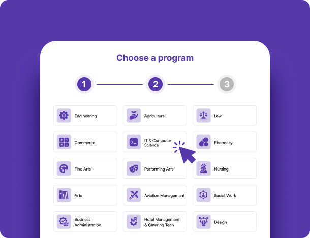 Choose your course or major depending on your qualification. Before making your final choice, you can find out about courses, careers, and professions.