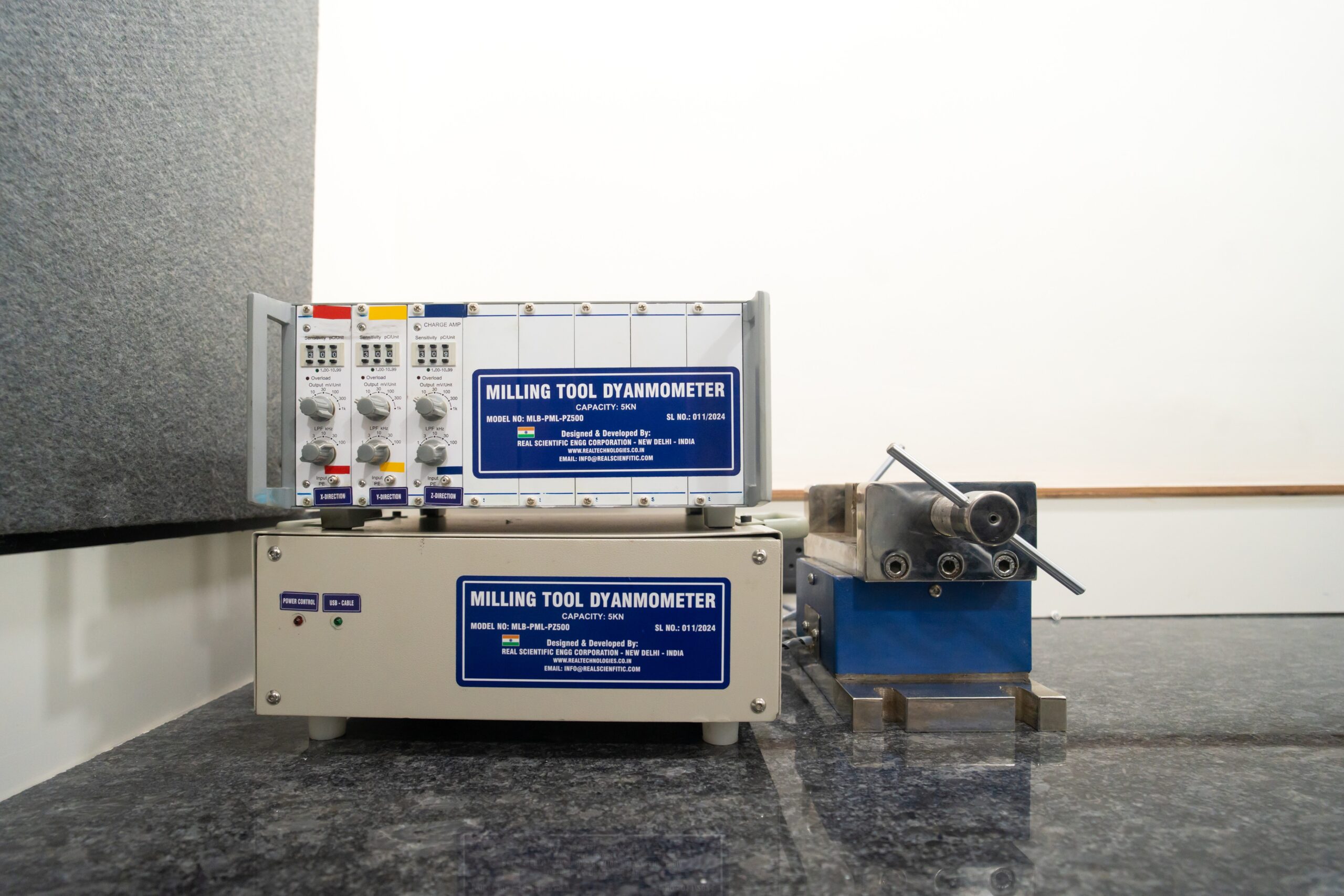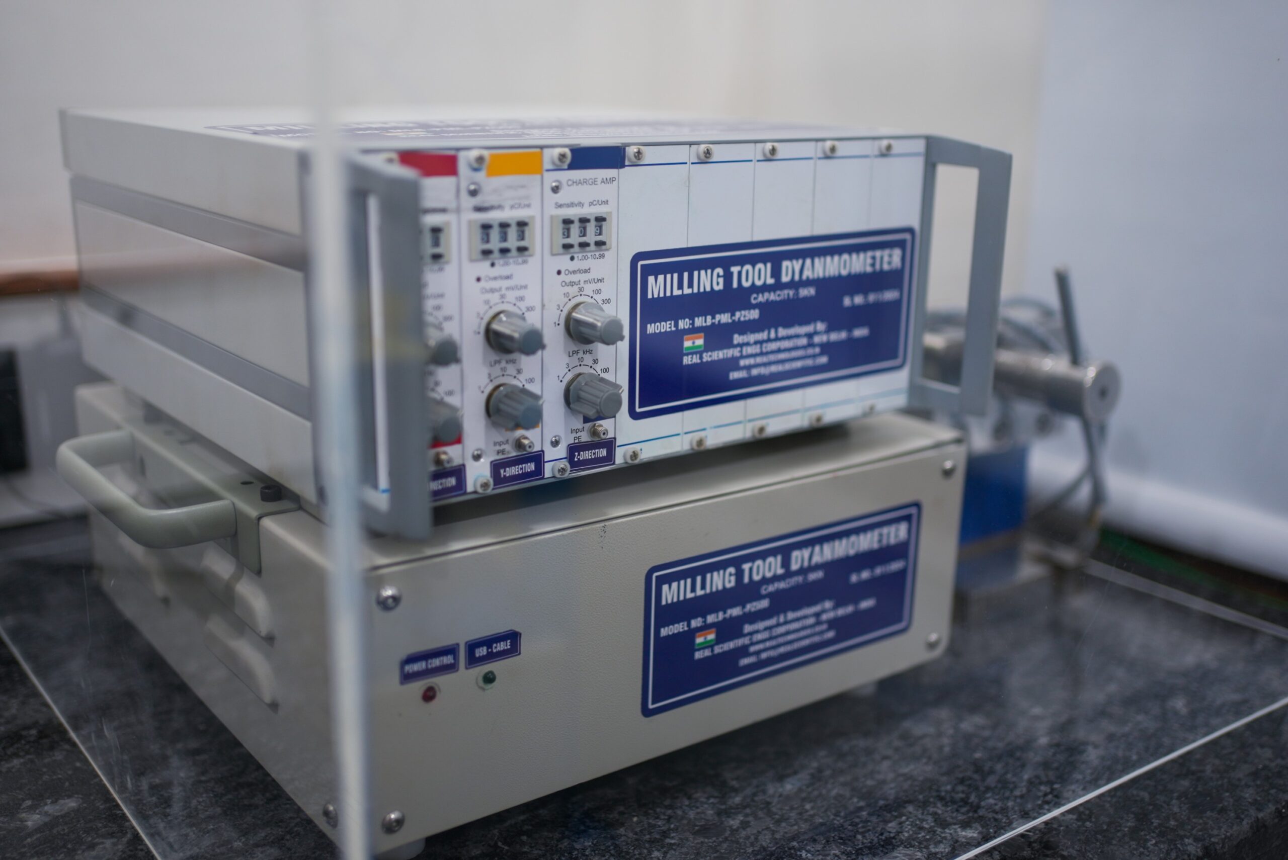 A Piezo-based Dynamometer uses piezoelectric sensors to measure the forces generated during machining operations - turning, milling, and drilling - in three orthogonal directions simultaneously. It provides real-time data on cutting forces, feed forces, and thrust forces, enabling optimization of cutting parameters, prediction of tool wear, and study of machined surface integrity. The MNRDC operates the MLB-PML-PZ500 model by Medilab Enterprise.