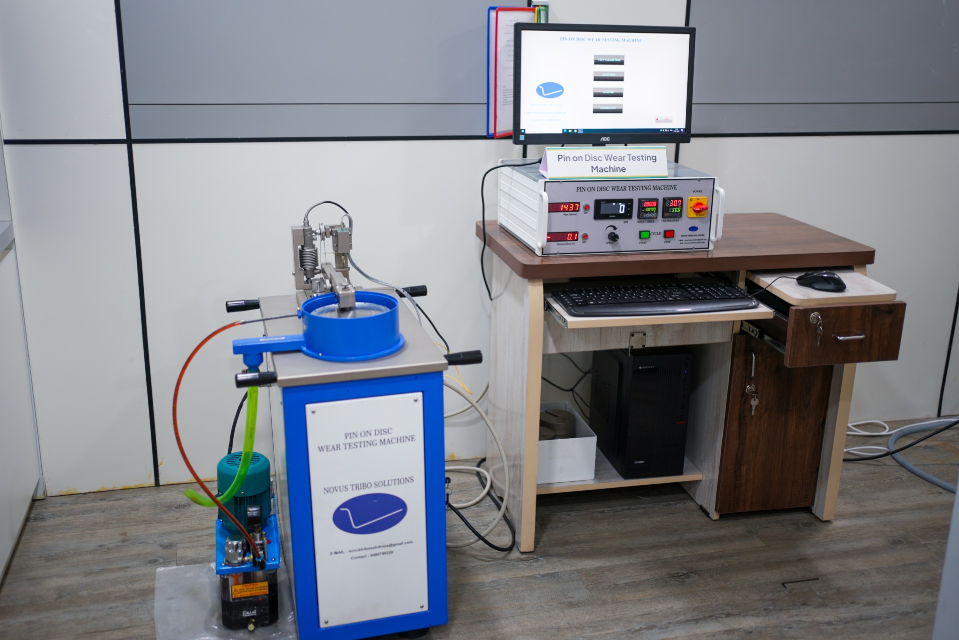 The MNRDC’s Pin on Disc Tribometer is the NTS R&D Version 03, manufactured by Novus Tribo Solutions, Bengaluru, India, at a cost of Rs.7.08 lakh. It has tested over 118 specimens (45 machine runs) since installation in 2024. All tests are conducted to ASTM G99 standard, ensuring that results are comparable with published literature and internationally recognised for industrial and research applications.