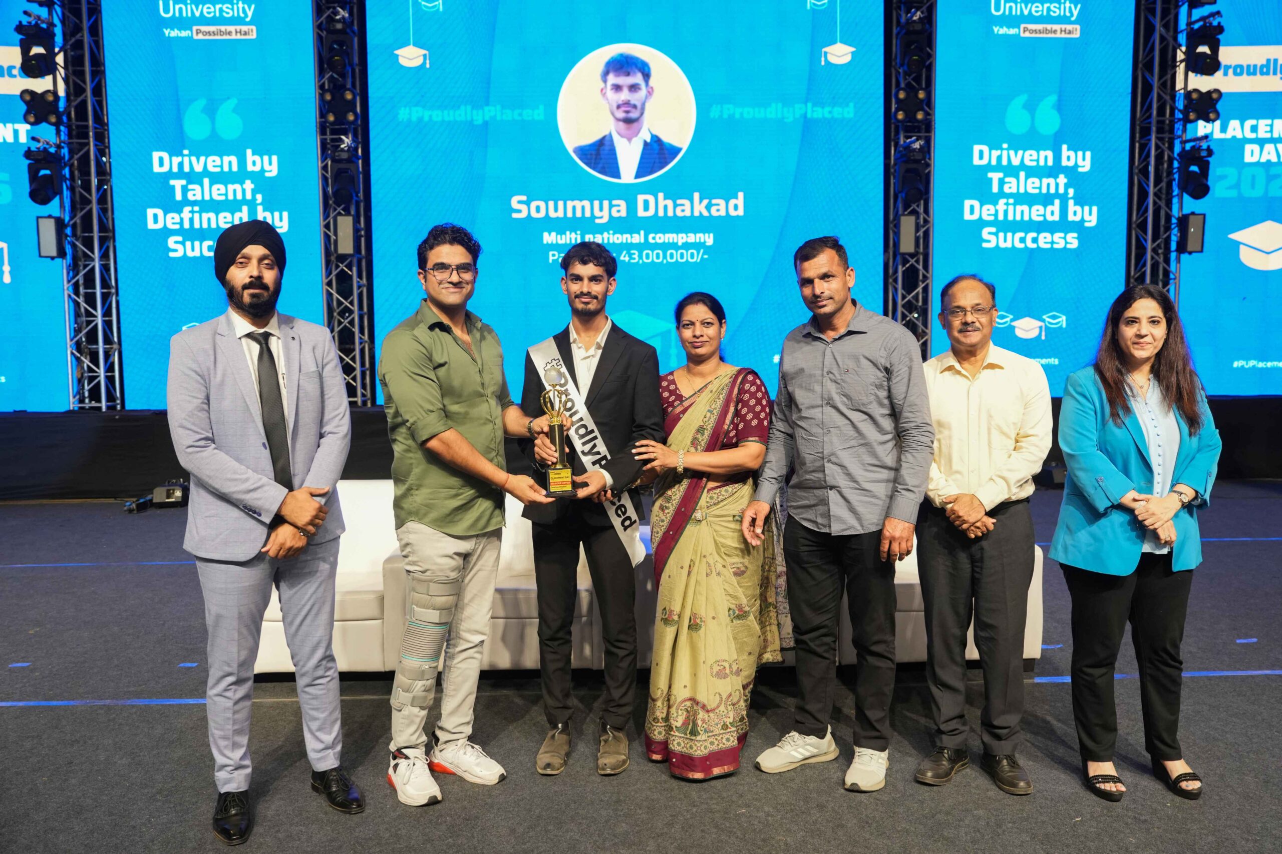 Soumya Dhakad is from a small town. He studied B.Tech CSE at Parul University. His package of 43 LPA at a multinational company is the highest of the current season. On Placement Day, his parents were given space on stage to speak about what this meant for their family. They did not have prepared remarks. They did not speak in corporate language. They did not reference rankings or statistics. What came out was unfiltered, honest, and deeply emotional. They spoke about their son, about where they come from, about what it means for a family like theirs to see their child placed at a company of this scale at a package of this size.