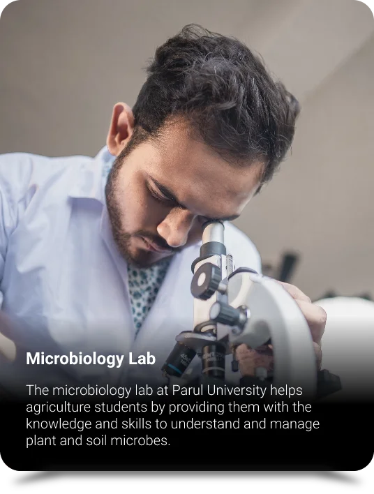 The Faculty of Agriculture at Parul University is the first private agricultural college of Gujarat, and has created a leading reputation as a premier center for Agricultural education. Through its State of the Art facilities for practical training, the Faculty has shaped the innovative and creative agro-based minds.