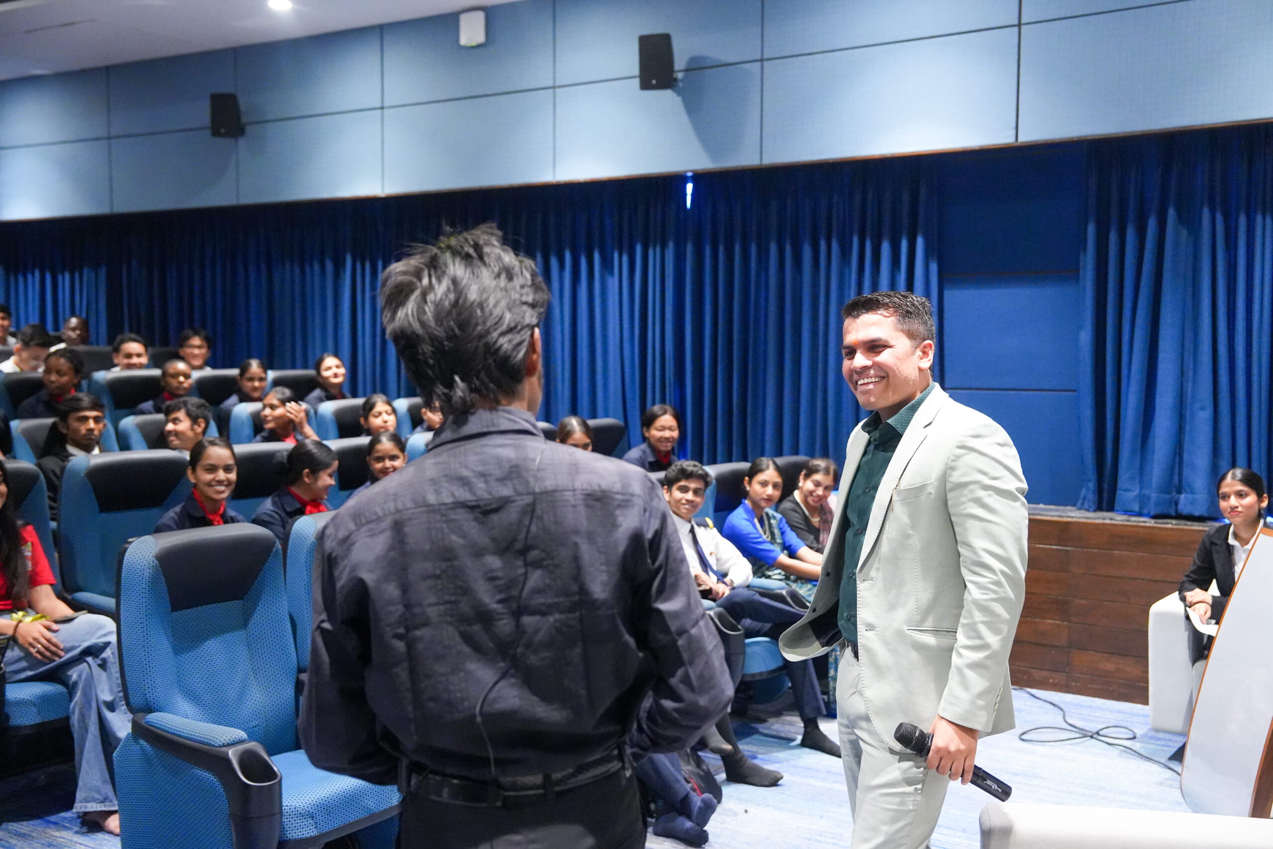 At Parul University, he demonstrated this technique live. His argument: when a captain communicates with warmth and rhythm, passengers feel reassured. If there is turbulence, a calm and creative captain puts passengers at ease – they think that if the pilot sounds relaxed, things must be under control.