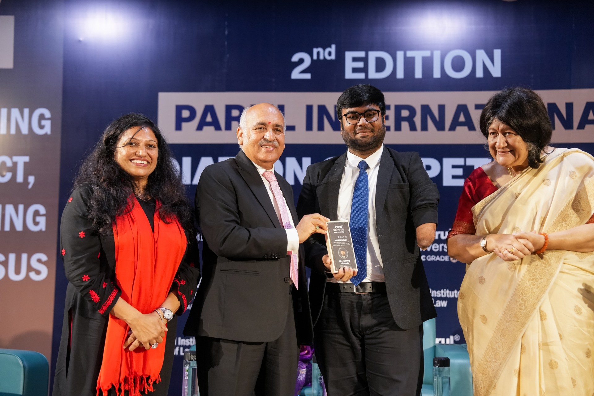 When Jaydeep returned to campus for the Parul International Mediation Competition, he was felicitated by two Supreme Court justices and recognized as a Distinguished Alumni. In his own words on LinkedIn: It felt honored to be felicitated by Honorable Mr. Justice Pankaj Mittal, Judge, Supreme Court of India. I would like to extend my regards to the place that introduced me to the world of law. It was an immense pleasure to meet my wonderful professors who taught me numerous laws. Thank you, my beloved juniors, for applauding and tagging me as a distinguished alumnus this year.