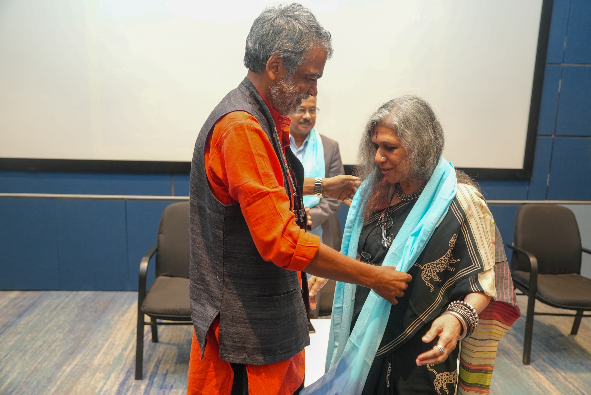 In her inaugural address earlier that morning, Rekha said something that stayed with the room: the true wealth of a nation is its educated population. Said by someone who has spent her career making art education count in a country that often treats it as secondary. She also runs the Collective Studio in Baroda with Surendra Nayar, a pro bono space they have maintained for over forty years where artists come, work 40 to 80 hours, and build visual literacy through art history, theory, cinema, and political history.