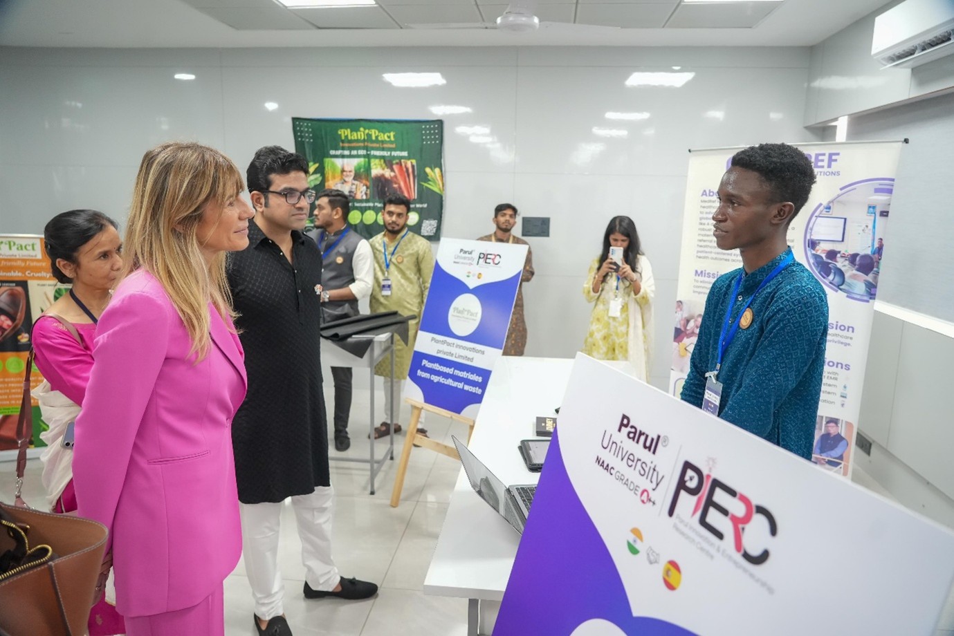 During her visit, Her Excellency took a tour of the incubation center, which provides aspiring entrepreneurs with mentorship, funding opportunities, and market launch essentials that are important for the launch of successful startups. The incubation center, a part of Parul Innovation & Entrepreneurship Research Center (PIERC), has launched more than 200+ student-led startups and brought them to remarkable success. The center also stands as the true testament to the university’s vision of developing an ecosystem where innovation thrives.