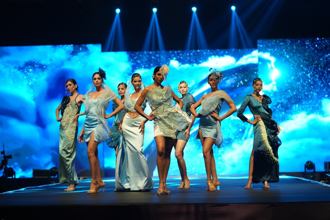 Other standout collections included Jalaj by Priya, Hunayna, Unnati, Deepika & Hema, a tribute to the lotus flower symbolizing resilience and spiritual enlightenment, and Moon Child by Semester 4th Fashion Design Students, capturing the celestial essence of the moon and the whimsical imagination power of childhood. THE FOUR ROOTS by Akansha and Naiya explored the elemental beauty of fire, earth, air, and water, while Phantom Reef by Hitiksha & Darshith channeled the enigmatic strength of the deep sea into avant-garde fashion.